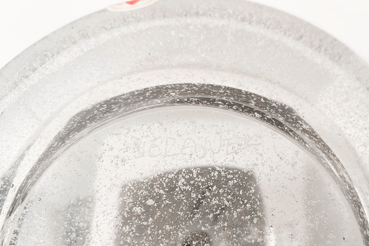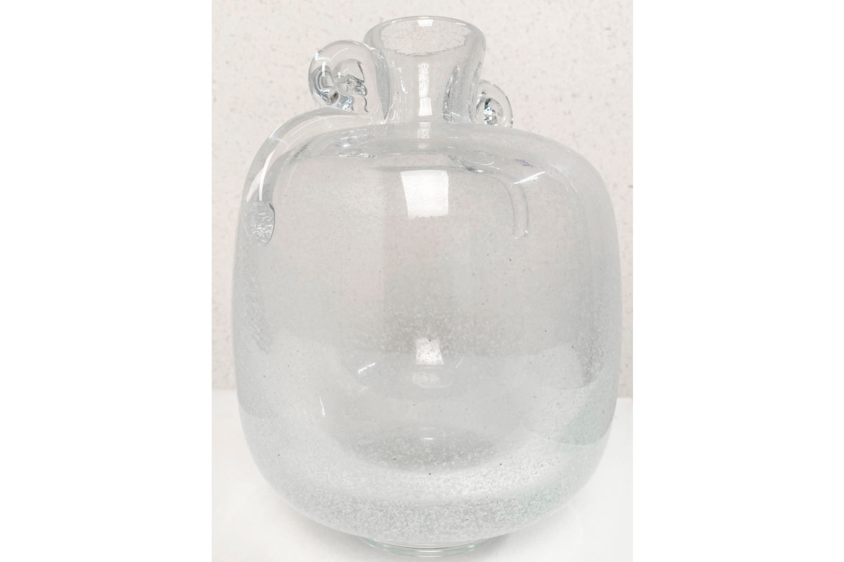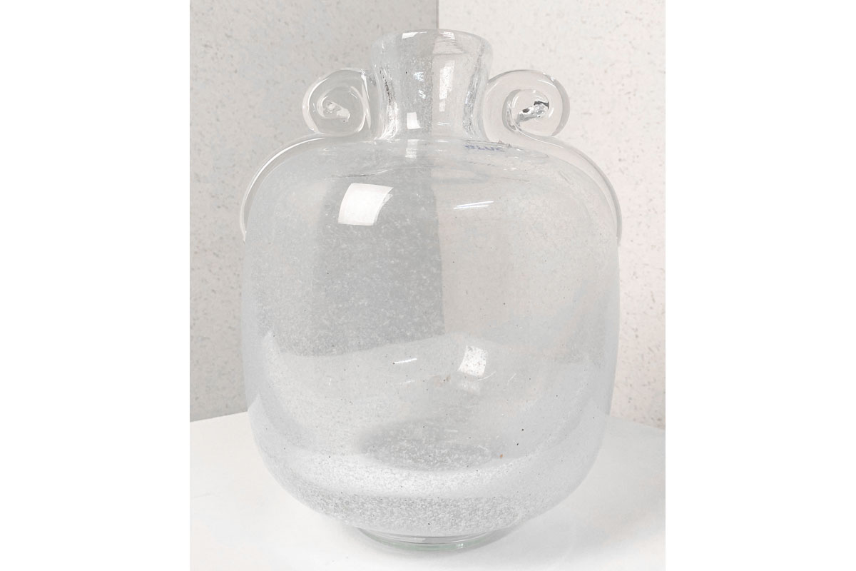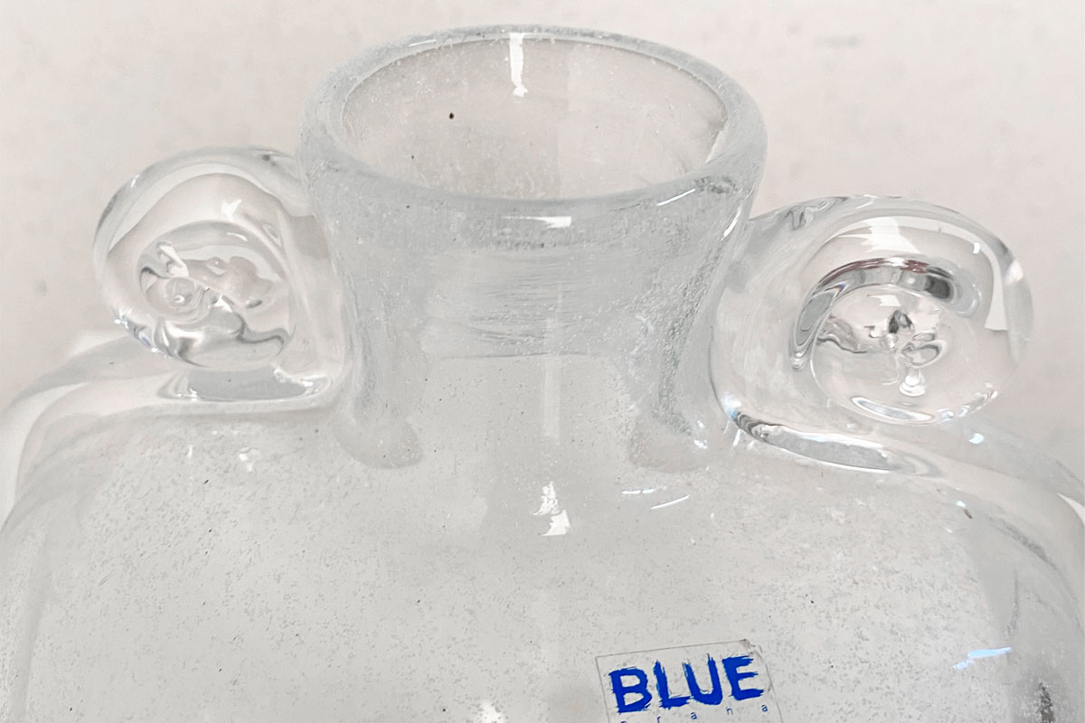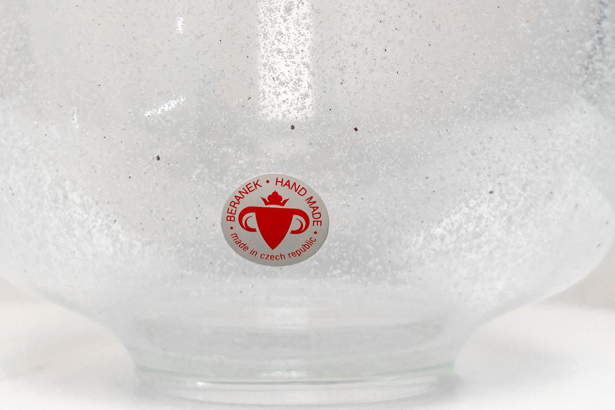 Schwere, Glasvase der Firma Beranek aus der Tschechische Republik, Model Blue, signierte Handarbeit, durchsichtig mit Blasen.