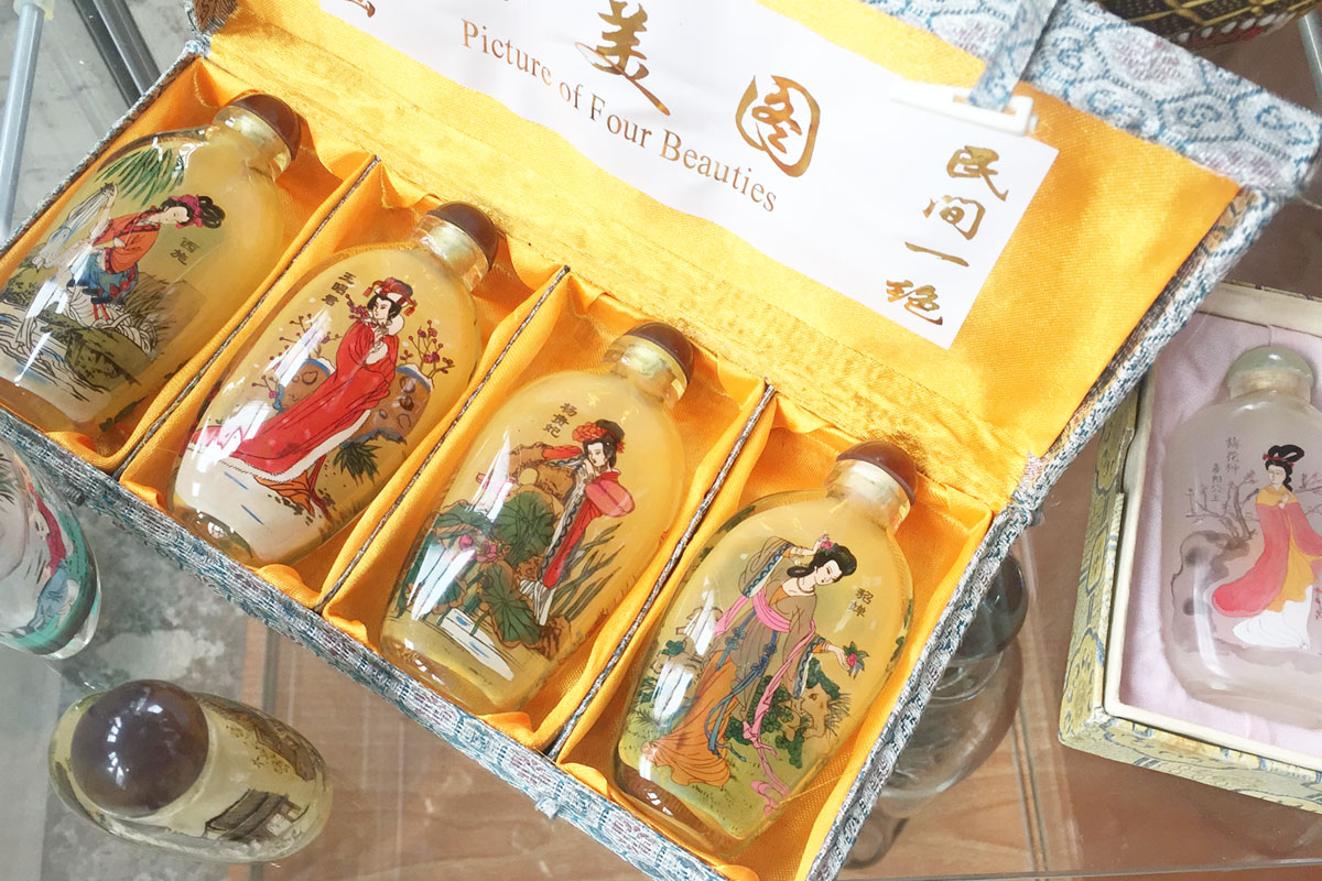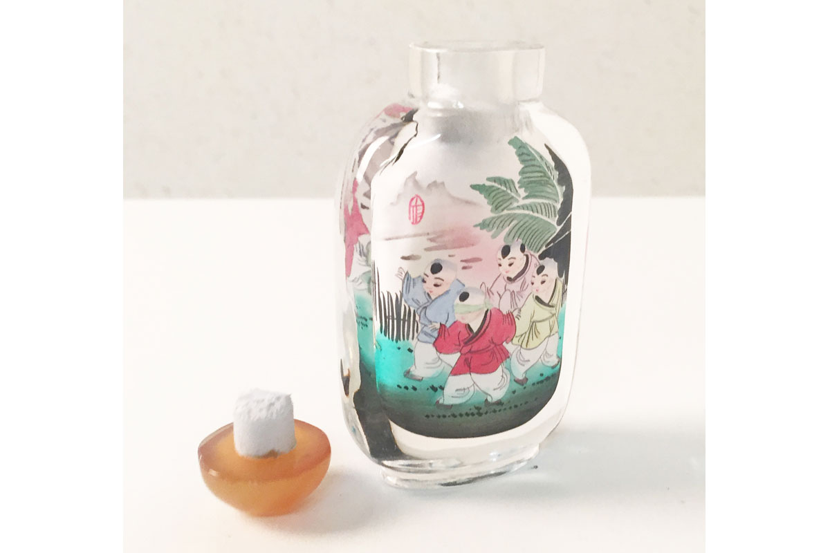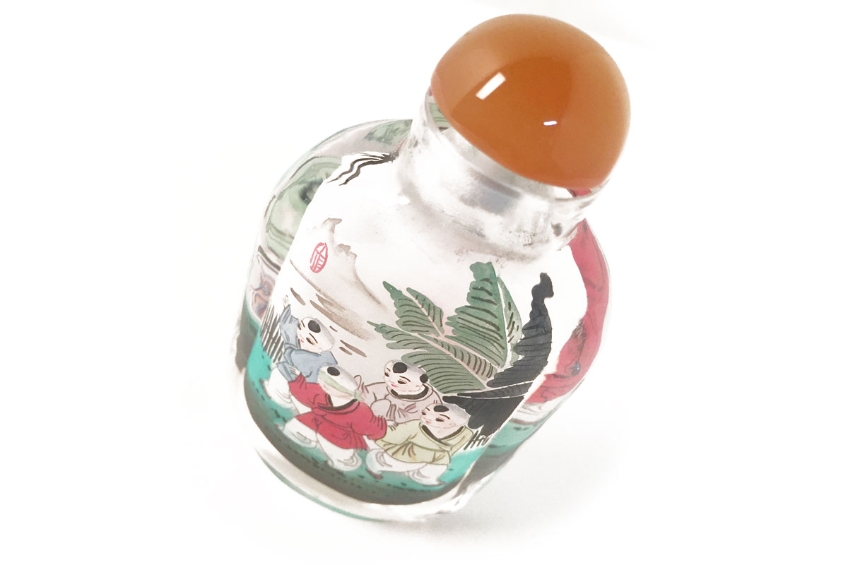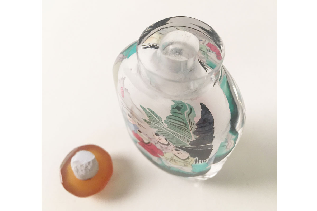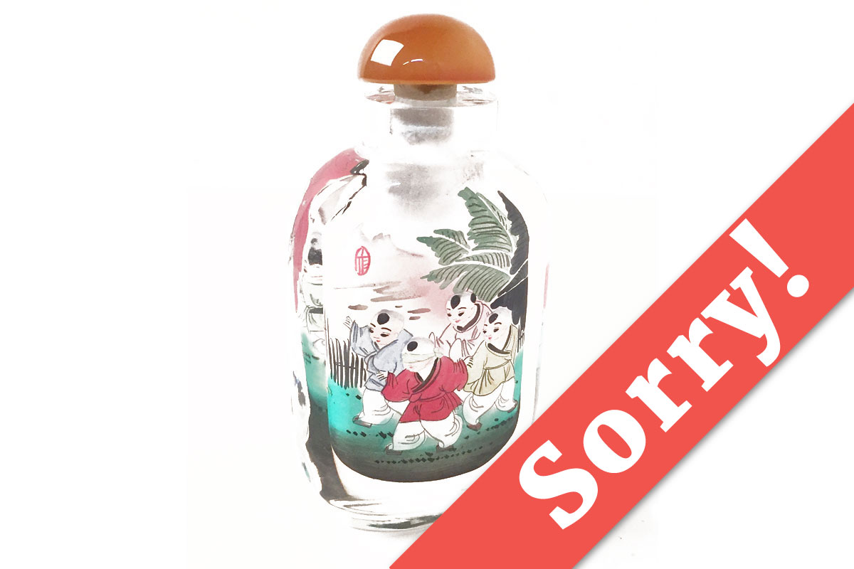 Kleine chinesische Schnupftabak Flasche mit Hinterglasmalerei. Noch diverse andere kleine Schnupftabak Flaschen vorhanden.