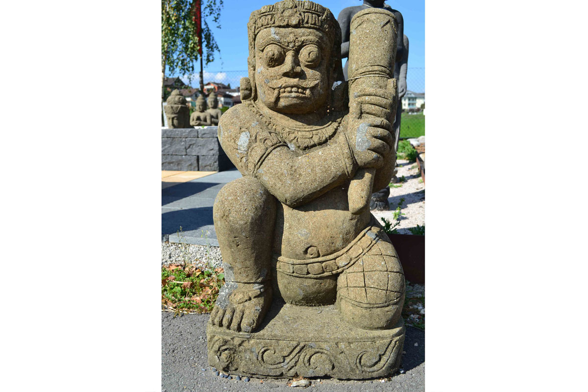 Handgemeisselte Steinskulptur Tempelwächter aus Green Stone (Basanit). Die Figur wurde direkt aus Indonesien importiert und ist im Zuge einer Totalliquidation unter dem Einkaufspreis zu kaufen.